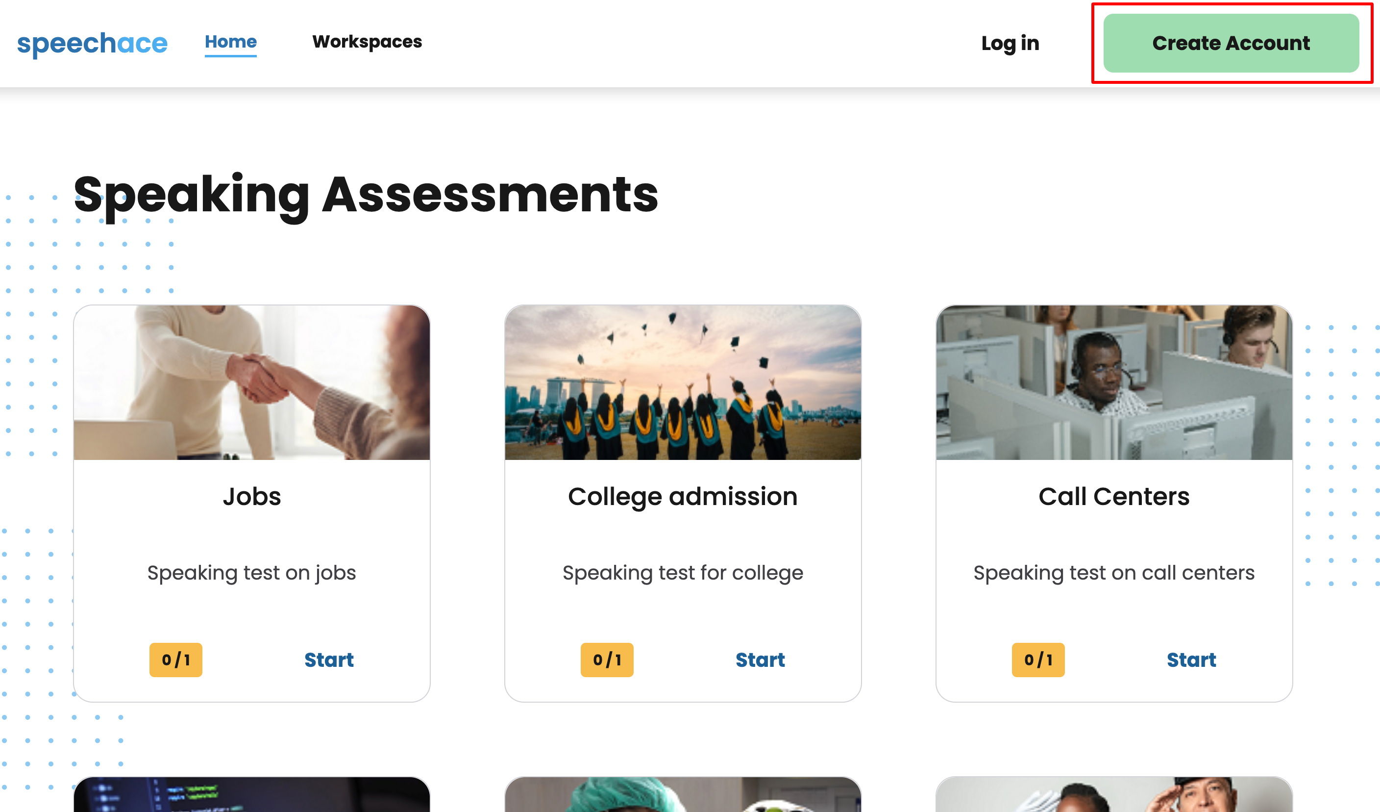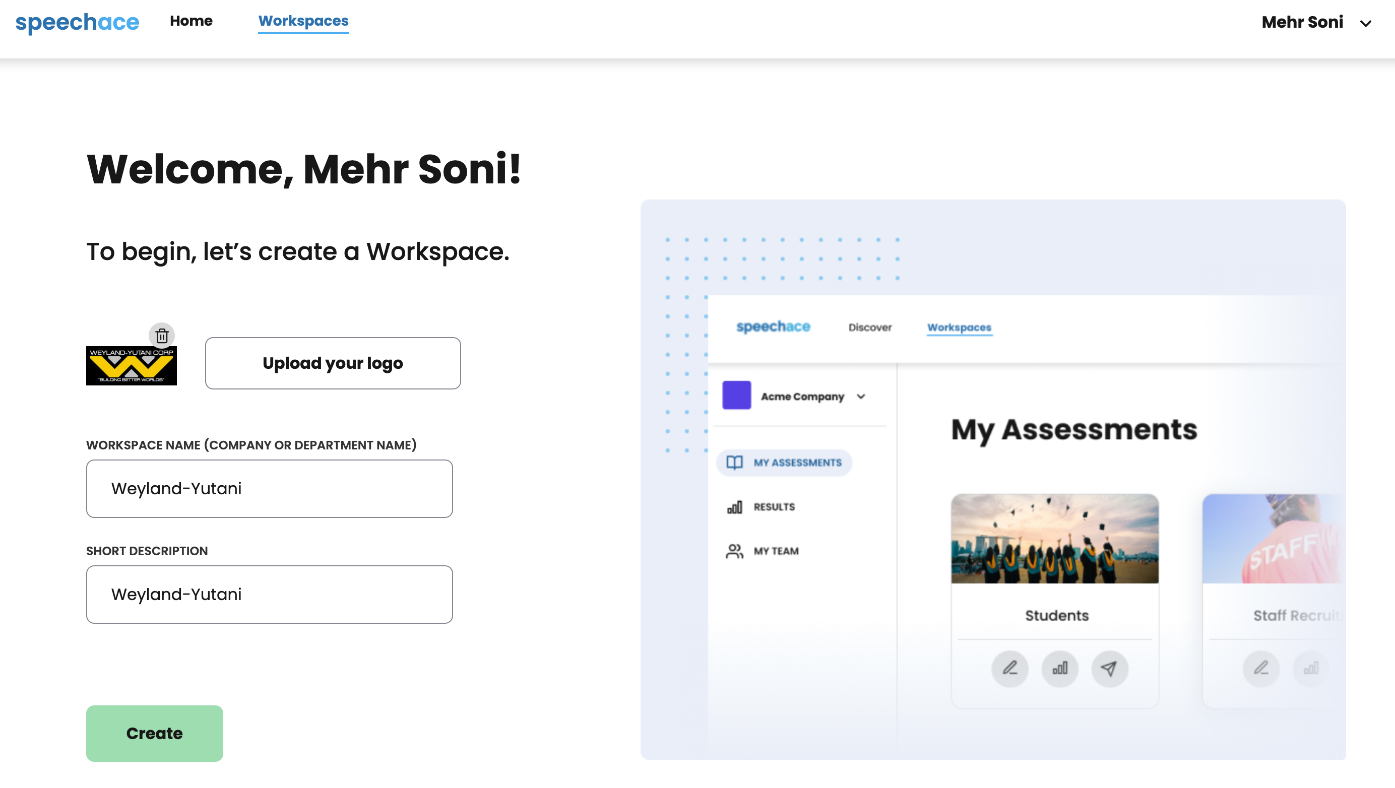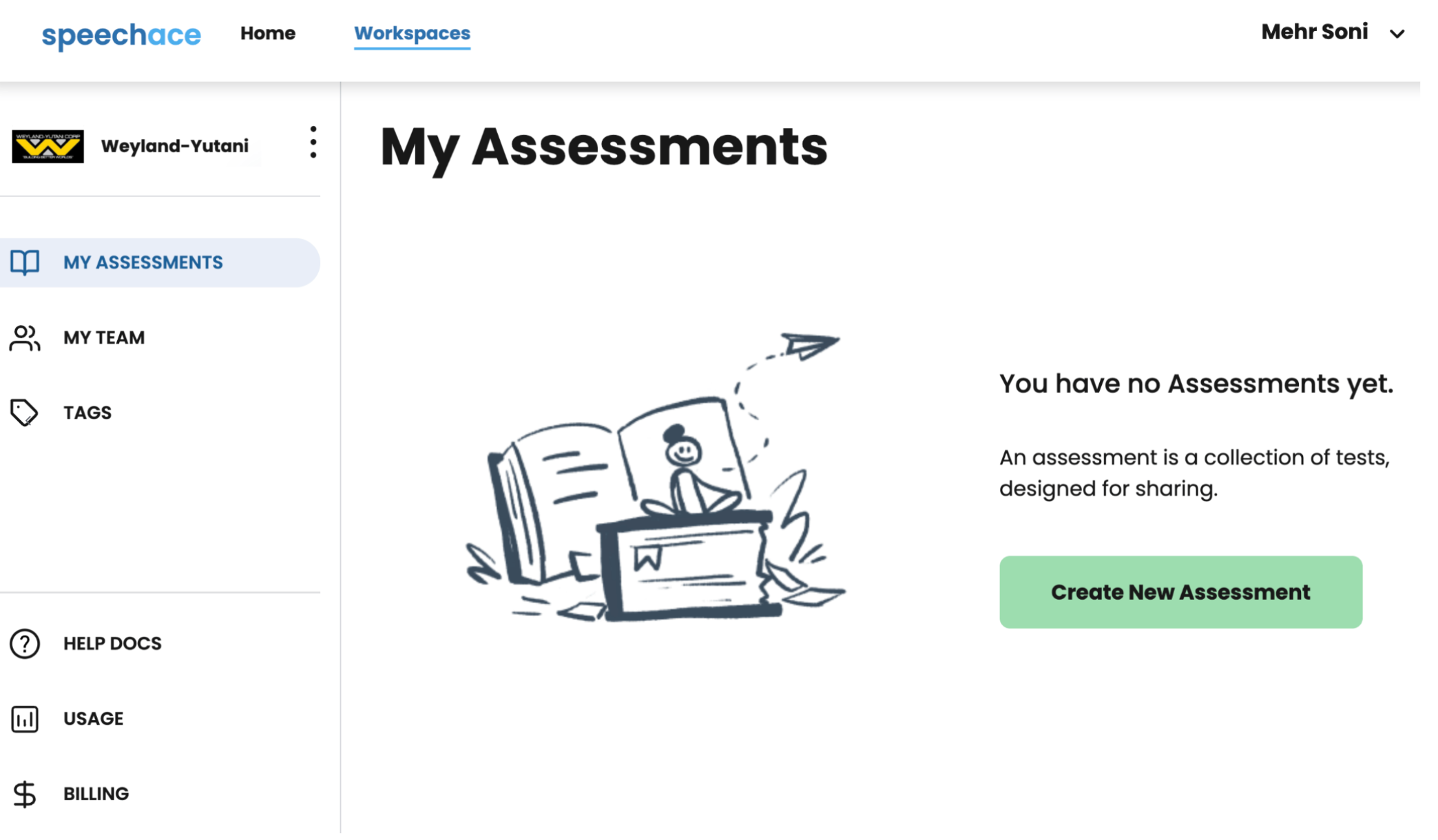 Once your workspace is set up, you'll land on your workspace homepage, where you can start creating assessments.