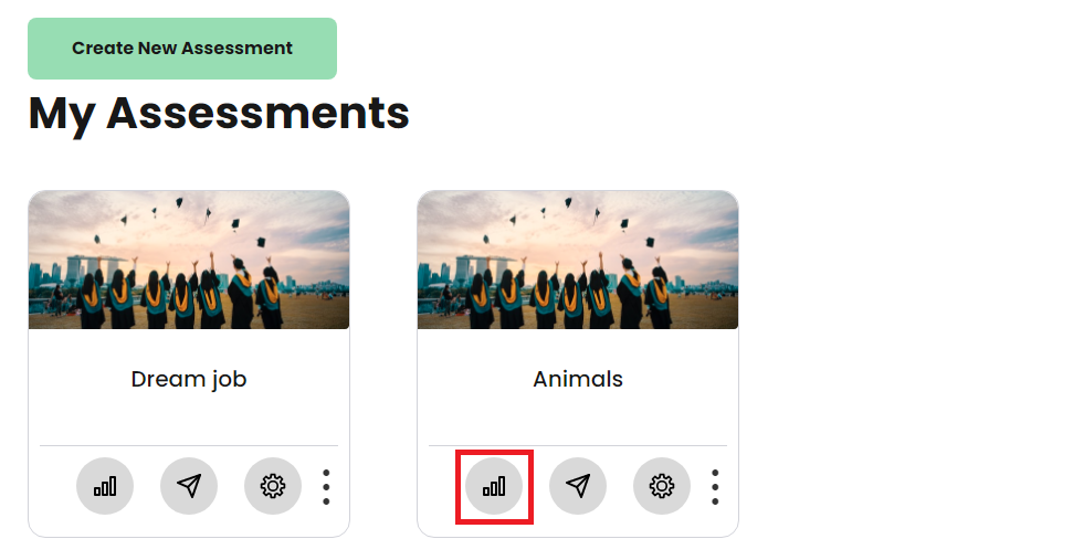 Speechace workspaces provide comprehensive reports on candidate scores and performance. All attempts made by candidates on an assessment in your workspace can be reviewed by clicking on the results icon for the assessment: